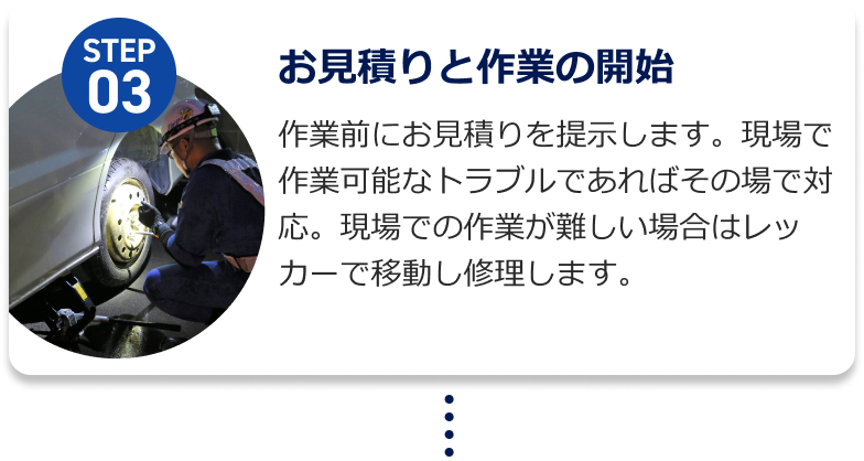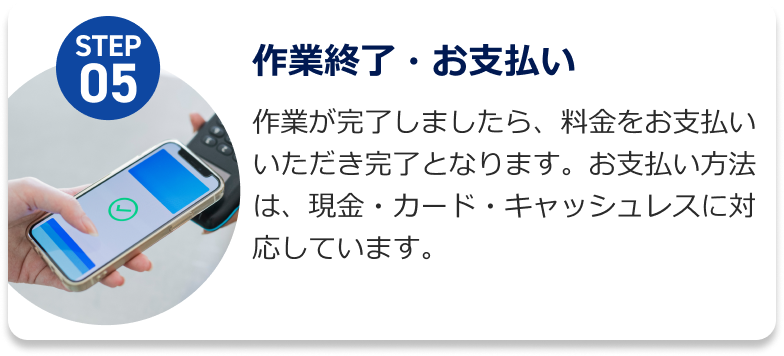 - お電話をいただいてから最短10分ほどで伺う事が可能です。交通状況により多少前後する場合がございます。